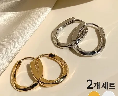 [2p] 고급스런 원터치 골드 실버 고급 링 귀걸이