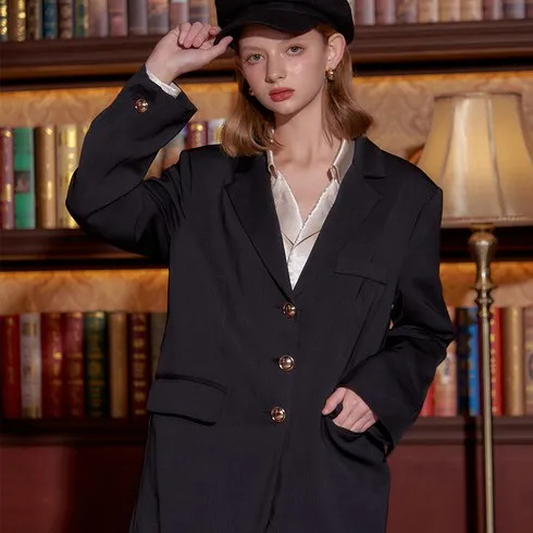 여성용 케이트 골드 버튼 자켓
